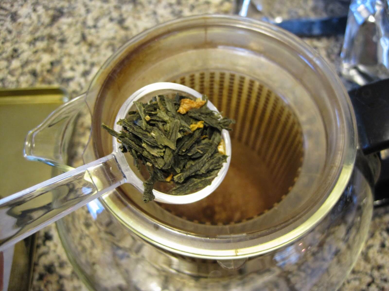 - Add 1 Tablespoon green tea, I used citrus green tea
