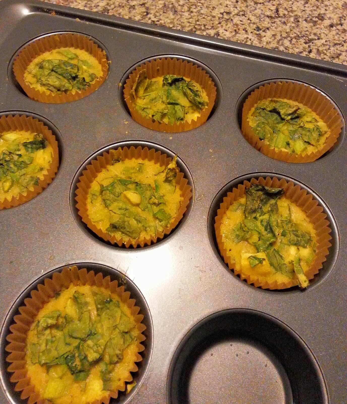 Line a muffin tin with parchment paper liners. Ladle about ½ cup of the mixture into each muffin cup. Makes between 12 and 16 muffin cup sized frittatas.