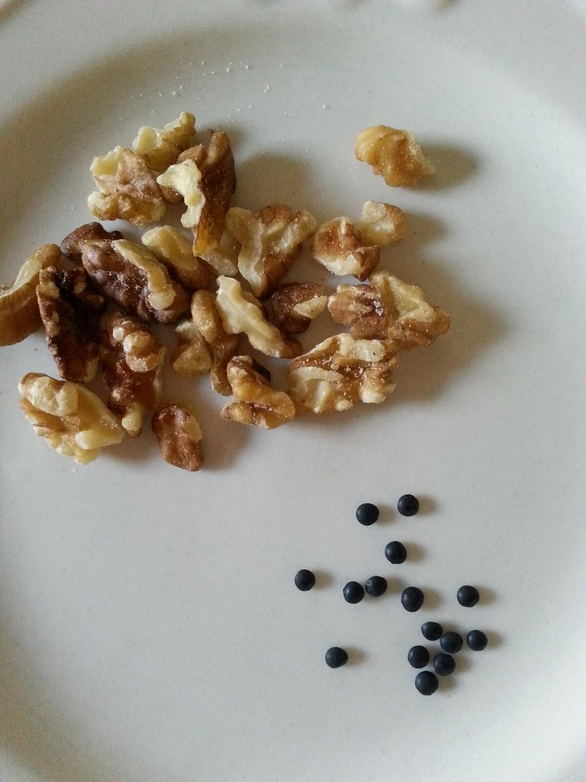 Here’s a photo of the Beluga lentils with walnuts (for size comparison), in case you’re not familiar with this type of lentil.