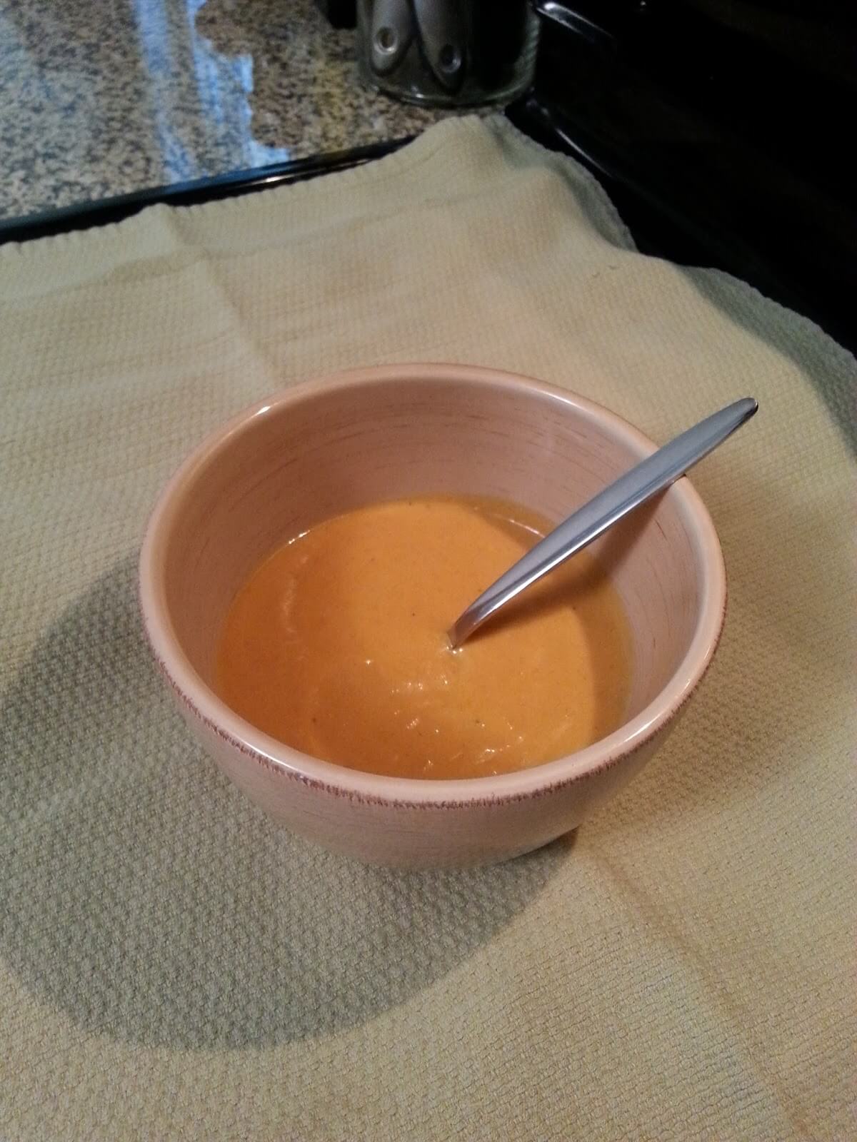 Add the pumpkin and mix slowly until it is well incorporated, turn the heat down to low. Then add the vegetable broth 1/2 cup at a time until you reach a desired consistency. Add the salt and spices, continuing to cook over low heat until the soup is warmed through.