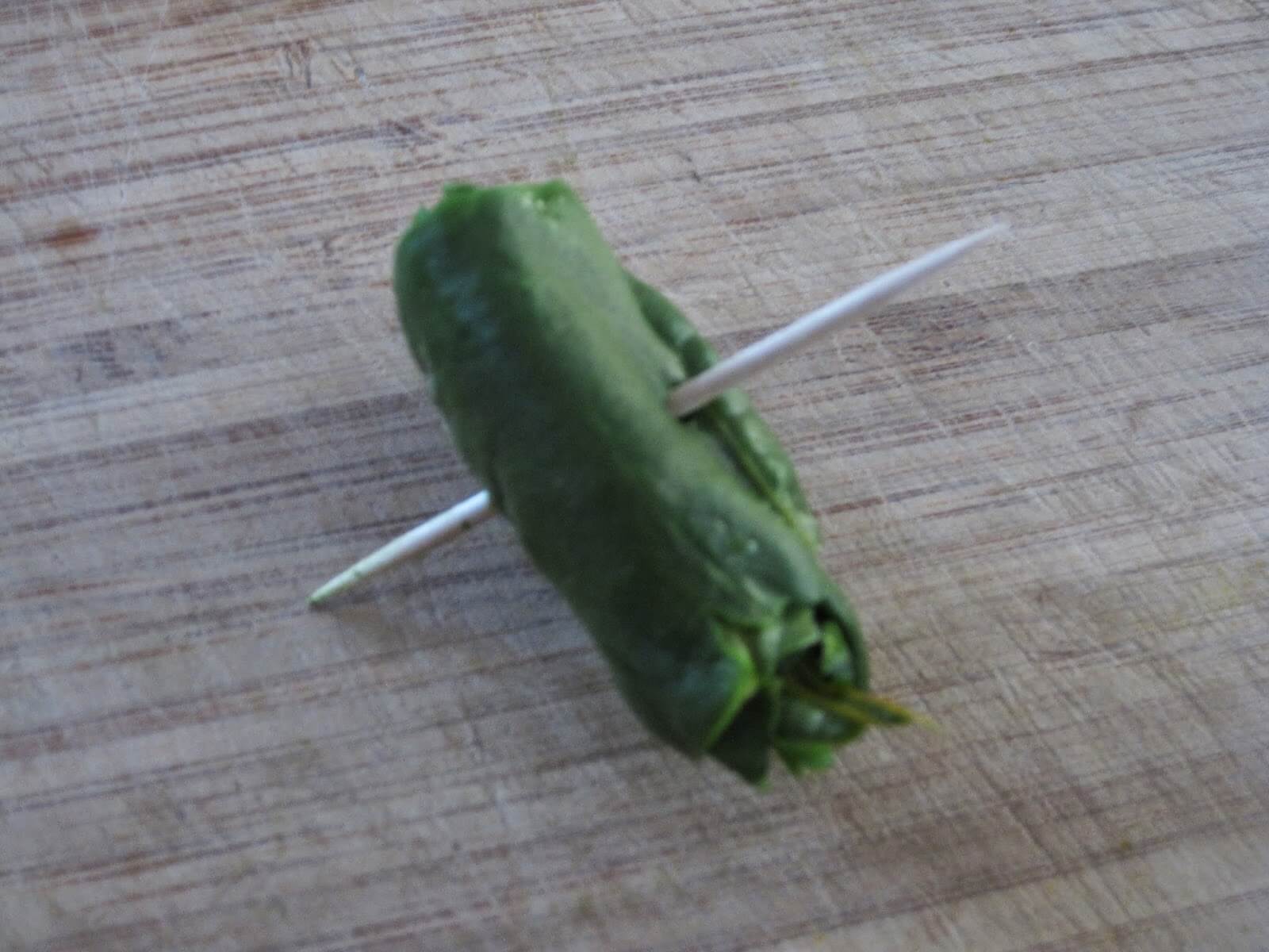 Roll up the leaves and secure with a toothpick.